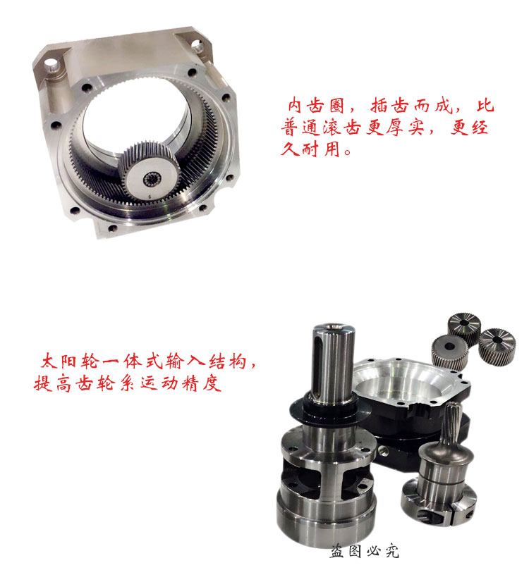 傳動效率達95%以上,采用優質底碳合金鋼,經精加工,滲碳淬火,研磨,精密組裝,實現高精準硬齒面閉合傳動,壽命長,效率高。